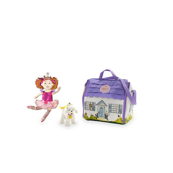 Everyone's favorite fancy girl is dressed as a frilly ballerina, complete with tutu and toe shoes, and is ready to play, along with her dog Frenchy, in this charming zip-up house tote.