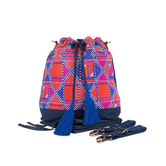 方便又時尚的水桶包設計,袋口採用雙層束帶—外層大流蘇、內層金屬束口扣—兼顧美觀和實用性