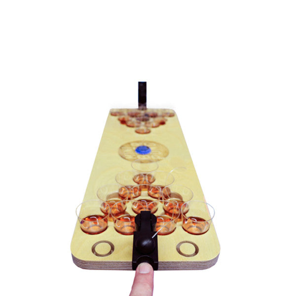 美國迷你啤酒乒乓遊戲組是一款將美國最紅的酒局遊戲「啤酒乒乓」改造成的桌遊玩具組。玩家利用彈射裝置將連著線的塑料球彈射到對方的塑料酒杯內,對方則需要將被投入塑料球的那杯酒一飲而盡。