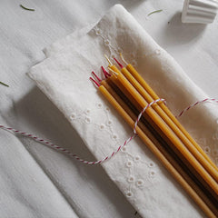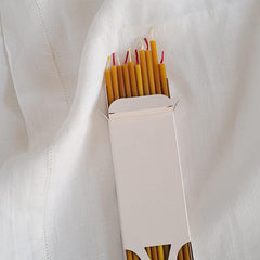 蠟燭是用當地農民的蜂蠟在立陶宛手工製作的,天然無毒,不添加人工色素或香味。作為一種天然材料,蜂蠟的顏色可能從亮黃色到深褐色不等。蠟燭可能會隨著時間的推移或在陽光直射下略微改變其色調。