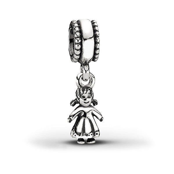 Description: A pure delight, the PANDORA Silver Girl Dangle Charm is a real must-have. Made from sterling silver, this charming dangle bead will add something special to your beloved PANDORA collection. Exquisitely crafted, the charm has beaded edge feature whilst the little girl has pigtail, dress and smiley face detail. The ideal design for any new mum, mother of a daughter, grandmothers or aunt, commemorate and celebrate your loves today with PANDORA.