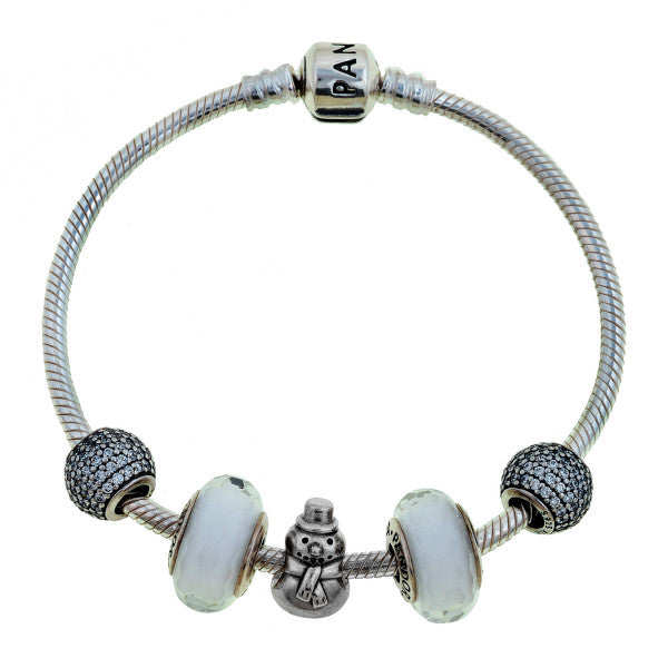 PANDORA's sterling silver snowman evokes memories of playful days in a winter wonderland. We've surrounded him with Icy white charms to keep him in his natural surroundings. It's a perfect holiday gift. Bracelet size is 17cm.
