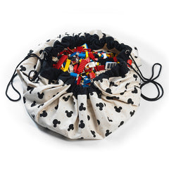 柔軟的材質,搭配可愛的圖案,可當作地墊,讓寶寶在上面盡情遊玩;幼童也能將自己心愛的玩具放在其上玩耍,遊戲結束後,輕輕拉上拉繩,輕鬆收納玩具;媽媽出門時,可將嬰幼童的尿布或玩具,收納其中,另附可拆卸的肩帶,可依需要與喜好,隨身揹在肩上或掛在嬰兒車。一物三用,讓生活變得更加輕鬆容易,深受大小朋友喜愛。