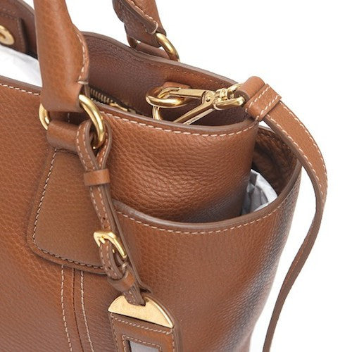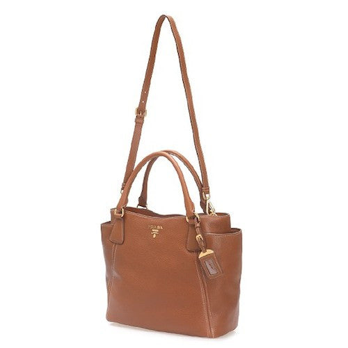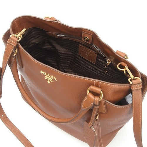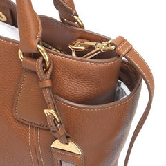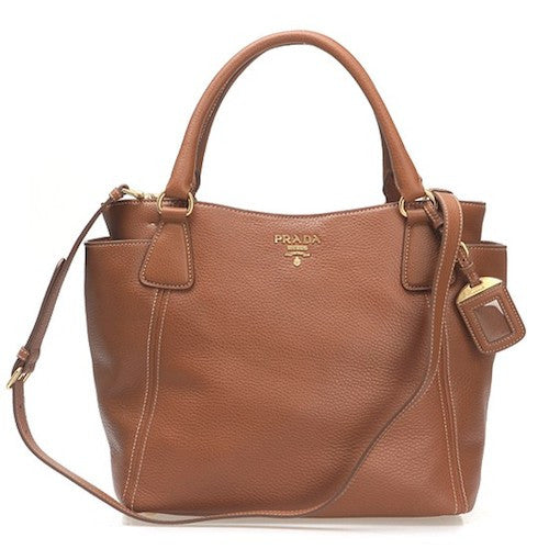 The Prada Rubino Vitello Daino Leather Side-Pocket Tote Bag BN2435 is one sophisticated piece. This spacious tote has the capability to hold all your daily essentials and more. It is made of gorgeous soft Vitello Daino leather with two rolled top handles, a removable shoulder strap and two large exterior pockets. The interior is lined with Prada logo jacquard lining and boasts one large zip pocket and one flat pocket! A gold-tone Prada logo completes the look. We love the structured shape of this trendy but classic bag.