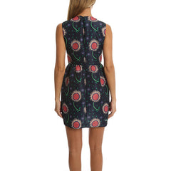 A mod cut and 60s style print bring a retro vibe to this baby doll tank dress with slightly bubbled skirt.