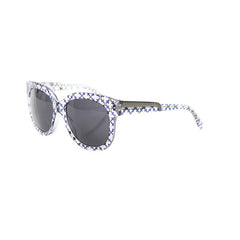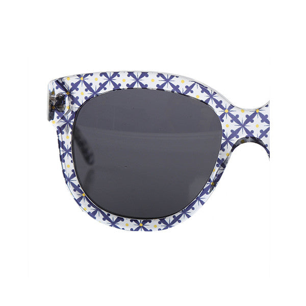 Transparent frame with navy floral pattern are completely different then any sunglasses you've owned before. The intricate, beautiful pattern makes them a one of a kind piece for your shade collection.