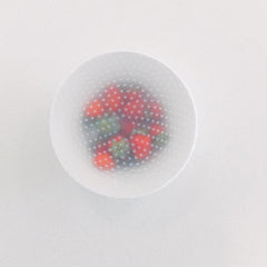 環保萬用食物保鮮膜吧!不僅可以微波、耐冷也耐熱,還比保鮮膜來得堅固,用起來就像蓋子一樣,可以將碗盤一層一層的疊起。