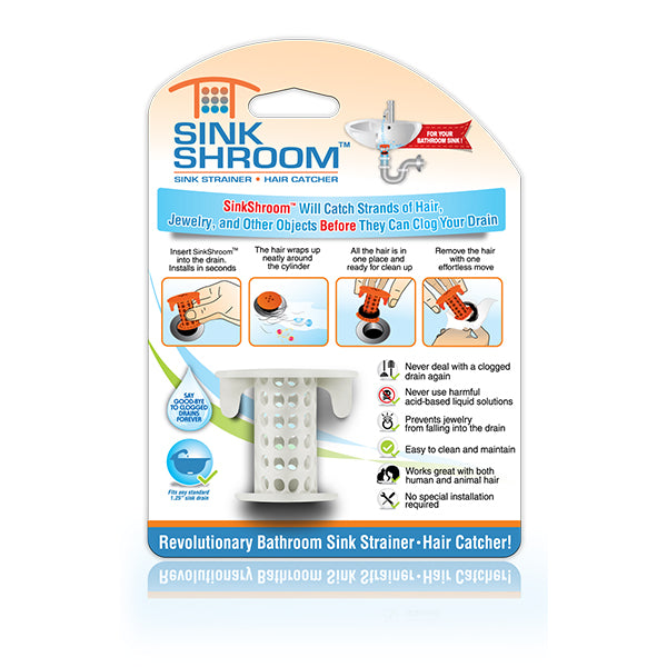 SinkShroom 的申請專利設計,可用於任何標準洗手台排水孔